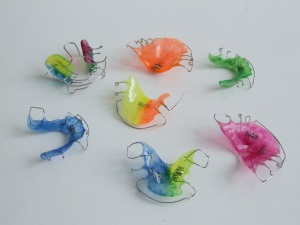 Diese herausnehmbaren Spangen bieten wir in verschiedenen Farben an. Sie dienen der Beseitigung geringer Zahnfehlstellungen, der Behandlung im Milch- und frühen Wechselgebiss sowie der Sicherung (Retention) des erreichten Behandlungsergebnisses nach Therapie mit “festen” Zahnspangen.